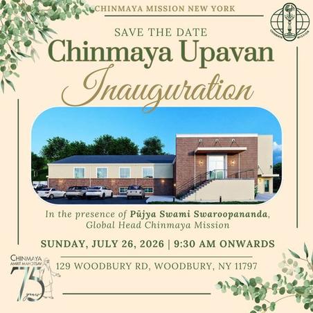 Chinmaya Mission New York warmly invites you with family to the inauguration ceremony of Chinmaya Upavan Ashram.