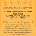 There is a trial Bala Vihar session scheduled on Saturday, April 25 for new fam...